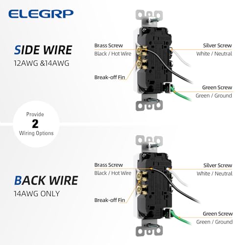 ELEGRP Decorator Receptacle, 15A 125V Standard Electrical Wall Outlet, Non-TR, 2 Pole 3 Wire, Self-Grounding Residential Grade, Screwless Wall Plate Included, UL Listed (10 Pack, Glossy White) está agotado y se enviará tan pronto como vuelva a estar disponible.