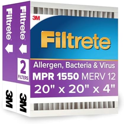 Filtrete 20x20x4 AC Furnace Air Filter, MPR 1550, MERV 12, Fits Honeywell, CERTIFIED Asthma & Allergy Friendly, Electrostatic Air Cleaning Filter, 2-Pack (actual size 19.88 x 19.88 x 4.31)