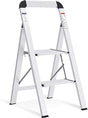 KINGRACK Aluminium 2 Step Ladder, Lightweight Step Stool with Non-Slip Pedals, Handrail, 330LBS Foldable Step Ladder for Kitchen, Garage, Home, Space Saving, Sturdy and Portable, Silver