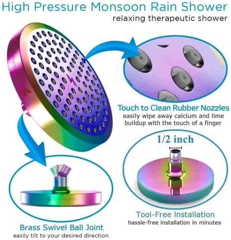 - EASY TO CLEAN NOZZLES: Our rustproof ABS plastic rainbow showerhead comes with 90 Powered Easy to Clean Rubber Jets remove hard water deposits such as limescale to ensure you always feel the full force of this luxurious rain shower head. A low maintenance shower head for years to come