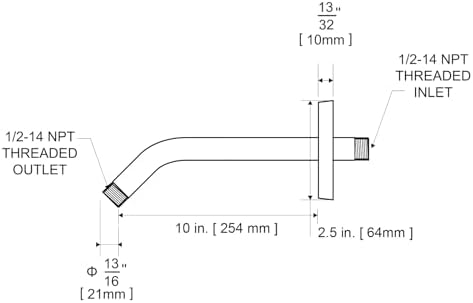 - [Installation and Specifications] Detailed instructions ensure worry-free installation. The product is 10 inches long, the thread specification of inlet is 1/2"-14 NPT, suitable for standard shower pipes. The thread specification of outlet is 1/2"-14 NPT (compatible with 1/2" IPS thread), suitable for sprinkles of standard interface.