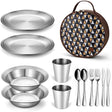 Odoland Camping Complete Messware Kit, Polished Stainless Steel Camp Dinnerware, Camping Cooking Tableware, Cutlery Organizer Utensil with Plates and Bowls Set for Backpacking, Hiking, Picnic