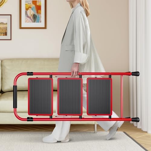 KINGRACK Step Ladder, 3 Step Ladder with with Anti-Slip and Wide Pedal,Portable Foldable Step Stool with Handgrip,Tall Sturdy Step Ladder for Home Kitchen Household,Red
