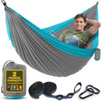 Durable Hammock 500 lb Capacity, Nylon Camping Hammock Chair - Double or Single Sizes w/Tree Straps and Attached Carry Bag - for Travel/Backpacking/Beach/Backyard (Large, Light Grey & Sky Blue)