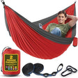 Durable Hammock 500 lb Capacity, Nylon Camping Hammock Chair - Double or Single Sizes w/Tree Straps and Attached Carry Bag - Portable for Travel/Backpacking/Beach/Backyard (Large, Red & Dark Grey)