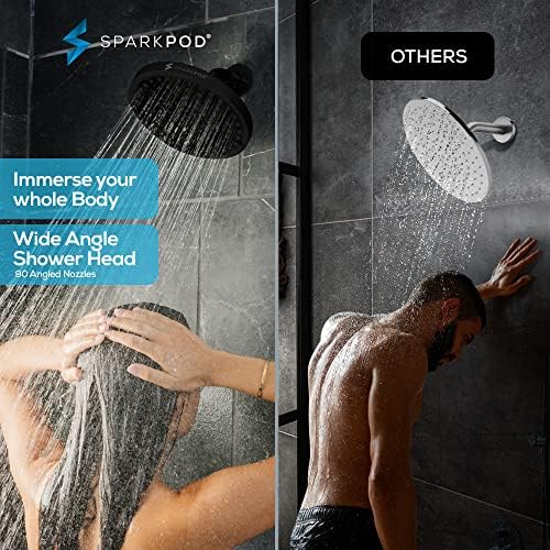 SparkPod Shower Head - High Pressure Rain - Premium Quality Luxury Design - 1-Min Install - Easy Clean Adjustable Replacement for Your Bathroom Shower Heads (Midnight Black Matte, 8 Inch Round)
