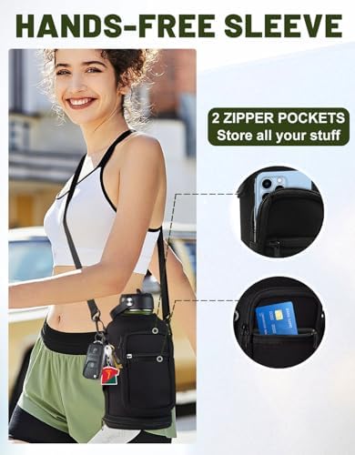 - PROTECTIVE BOOTS & STORAGE SLEEVE: Upgraded silicone boots prevent shattering and cracking when stainless steel water bottle accidental dropped. And storage carrying pouch with removable shoulder strap for convenient hands free carrying! The safe zippered pocket design to stores all your stuff, holds your cards & phone & key