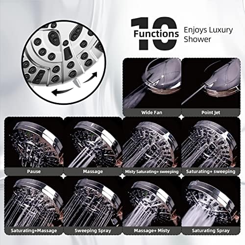 - 5 YEARS SERVICE: Our handheld shower head with hose bring you luxury shower with 10 ifferent functions. No worry in low pressure area anymore. Let's us know if any questions of this shower head, we will get back to you within 24 hours