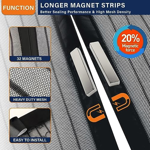 Magnetic Screen Door, Fit Door Size 32 x 96 Inches, Screen Doors with Magnets, Pet & Kid Friendly,Works with Front Doors, Sliding Doors Black
