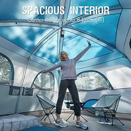 - Roomy for 10 Person: This camping tent is 14' x 10' x 84", spacious to fit 4 queen size air mattresses or 10 sleeping bags. The 84" center height is higher enough for standing up straight and comfortable movement inside the tent.