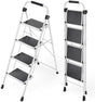 - 【Space-Saving Folding Step Ladder】: This foldable 4-step stool can be easily folded to just 2.68" D and stored against a wall or corner, in your closet or under your bed without using much space. This lightweight steel ladder only 13.66 lbs, therefore, easily transported using one hand.