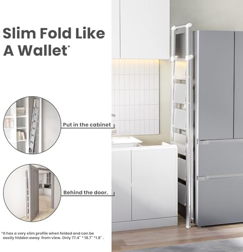 - Folds Slim to 1.77 '' Like A Wallet - It's very simple to open and close. The step ladder has a very slim profile when folded, so you can tuck it away in a small space and can be easily hidden away from view