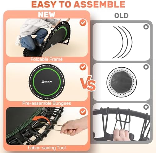 - Fairly Easy to Assemble: BCAN fitness trampoline comes with 60% pre-assembled, Only 10 minutes to complete the assembly with our special tool