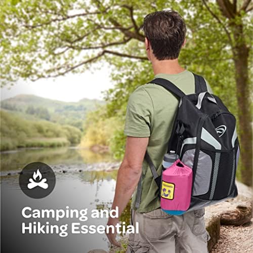 Durable Hammock 500 lb Capacity, Nylon Camping Hammock Chair - Double or Single Sizes w/Tree Straps and Attached Carry Bag - Portable for Travel/Backpacking/Beach/Backyard (Large, Fuchsia & Sky Blue)