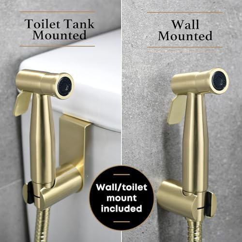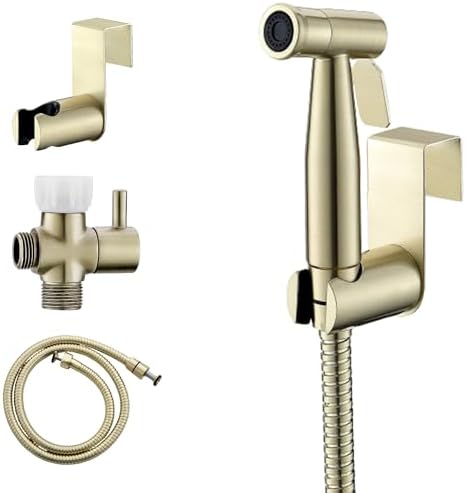 Purrfectzone Bidet Sprayer for Toilet, Handheld Bidet Sprayer Kit, Easy-to-Install Toilet Handheld Shower, Hand Held Stainless Steel Shattaf with Adjustable Flow, Cloth Diaper Set-Brushed Gold