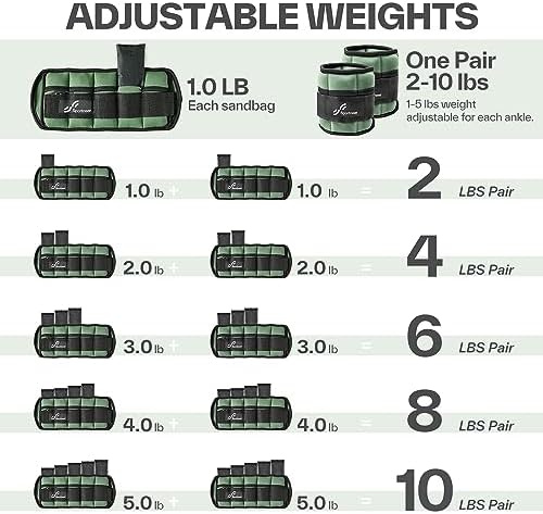 Sportneer Adjustable Ankle Weights 1 Pair 2 4 6 8 10 Lbs Leg Weight Straps for Women Men, Weighted Ankle Weights Set for Gym,Fitness, Workout,Walking, Jogging,1-5 lbs Each Ankle, 1 Pair 2-10 lbs