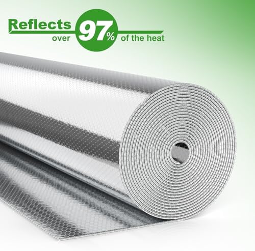 - AlUMINUM REFLECTIVE INSULATION ROLL SIZE: 48''(W) x 10Ft (L), Easy to cut that can cater to all your home or RV window sizes, sturdy and lightweight. Easy Install With Adhesive Adop