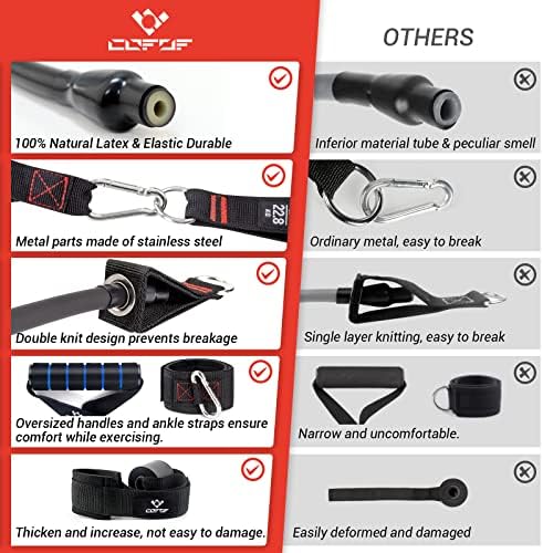 - 💞Upgraded Resistance Bands & After-sales Service: You will get resistance band*5, 2 handle, 2 ankle strap, 1 door anchor, 1 training poster, 1 instruction manual. To increase your workout intensity level, simply combine resistance bands with training posters to suit your workout needs. With resistance band exercises, you can get the perfect shape. If you encounter any problem while using the product, please contact us and we will help you to solve it within 12 hours.