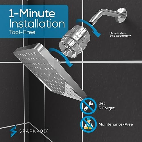 SparkPod Luxury Filtered Shower Head Set 23 Stage Shower Filter - Reduces Chlorine and Heavy Metals - High Pressure Showerhead Filter (8" Square, Luxury Polished Chrome)