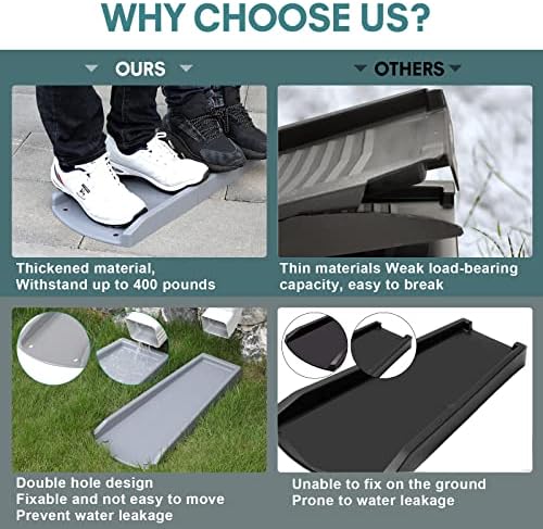 - 【 UPGRADED VERSION 】: Unlike other on the market, this gutter downspout splash block is an upgraded version, made of thickened PE material. Its biggest advantage is strong and sturdy. It will not deform or crack even in harsh weather (such as snowy). And it can withstand up to 400 pounds