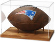 JupDec Football Display Case Full Size, Acrylic Clear Box with Wood Stand, UV Protected Memorabilia Holder, for Football Fans & Collectors, Sports Collectibles, No Assembly Required