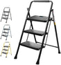 - [STURDY & SAFE] Made with high-quality steel and a durable construction, our step ladder 3 step folding is built to withstand up to 330 lbs of weight. With its anti-slip treads and non-slip rubber feet, you can climb up and down the folding ladder with confidence, knowing that you're safe and secure.