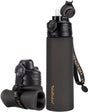 Collapsible Water Bottles 20oz, Leak Proof, BPA-Free, Foldable Silicone Travel Water Bottle with Straw Strap for Cycling, Hiking, Outdoors
