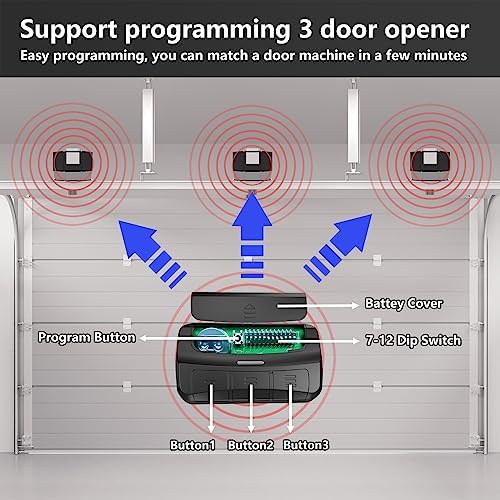 - [Control 3 Different Opener]-The universal garage door opener remote features 3 buttons that can be programmed to control up to 3 different garage doors individually, eliminating the need for multiple remotes and simplifyin