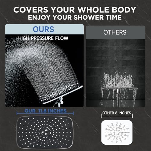 - Luxury Rain Shower Experience: Transform your daily shower into a spa-like escape with the 11.8-inch rainfall shower head, delivering full-body coverage and consistent water pressure.