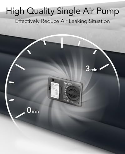 - Upgraded Air Pump - This air mattress queen with built in electric single air pump has been validated over the years and matched with our own design, which is much easier and quicker to use - no additional manual valve, which effectively reduces leaks and inflation/deflation time