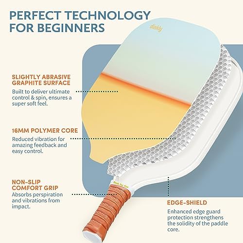 - [Beginner-Friendly] Design for beginners, our 8oz pickleball paddle features 14mm polymer honeycomb for a larger hitting area and lightweight head, providing the perfect balance of speed and power. With a graphite fiber surface and durable edge shield, it offers excellent shock absorption and elasticity, ensuring a smooth, controlled feel for easy play.