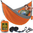 Durable Hammock 400 lb Capacity, Nylon Camping Hammock Chair - Double or Single Sizes w/Tree Straps and Attached Carry Bag - for Travel/Backpacking/Beach/Backyard (Medium, Orange & Light Grey)