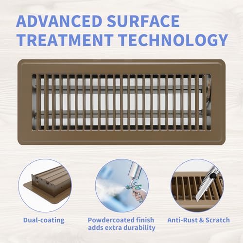 - Customizable Airflow Control: The 4" x 12" brown floor vent register provides efficient and reliable air circulation within the living spaces. Opposed blade damper for easy airflow adjustment, maximizing comfort and efficiency. They operate quietly and without rattling, providing an optimal airflow experience.