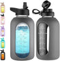 - HALF GALLON CAPACITY WATER BOTTLE: Large water bottle ensures you enjoy enough water without having to refill it frequently. It's perfect for an on-the-go lifestyle! 32 oz, 40oz, 64 oz capacity glass water bottles that meet your different hydrating need