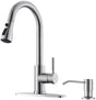 WEWE Kitchen Sink Faucet with Soap Dispenser, Kitchen Faucet with Pull Down Sprayer 3 Modes Stainless Steel Single Handle Single Hole Pull Out Brushed Nickel Faucet for Bar Laundry RV Utility Sink