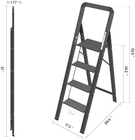 - 【1.77 inch after Folded】: The size of this ladder meets the use demand of most families, the ladder is only 1.77 inch wide after folded, making it ideal for storage in the corner or under the sofa, etc., easy to storage and reduce storage space, open size:17.53*30.14*54.06 inch, folded size: 17.53*1.77*58.27 inch