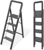 KINGRACK Aluminium 4 Step Ladder, Lightweight Step Stool with Non-Slip Pedals, Handrail, Foldable Step Ladder for Kitchen, Garage, Home, Space Saving, Sturdy and Portable, Black