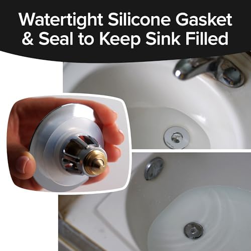 Drain Magic AS-SEEN-ON-TV Replace Broken or Missing Bathroom Drain Stoppers in Seconds, No Tools, Push To Fill, Hair Catcher Prevents Clogs, Watertight Silicone Seal,Chrome Plated Solid Brass
