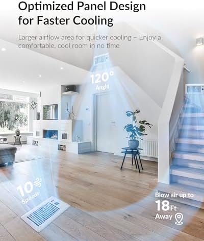 - Innovative Design Crafted from durable 2mm steel, the fan panel supports up to 300 lbs. The two-way airflow design ensures wider coverage, improving your home’s cooling efficiency and creating a more comfortable living space. Fits ONLY 4 x 10 inch Register Vent. Airflow: 140 CFM. Noise: 16 Dba. Color: White