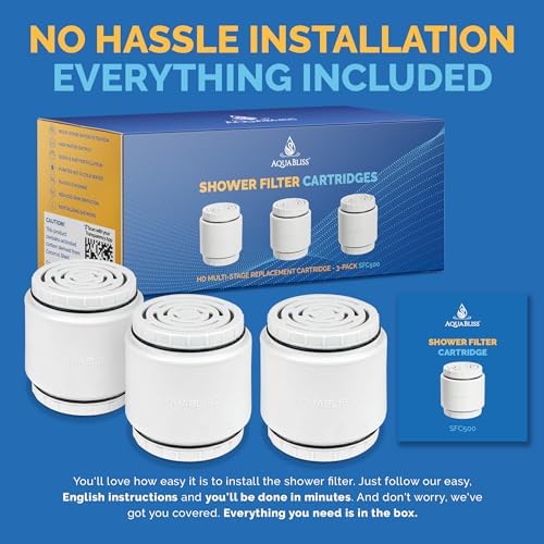 AquaBliss HD Multi Stage Shower Filter Replacement Cartridge for SF400 & SF500-48x Heavy Duty Detox Power. Kiss Itching, Breakage & Dullness Goodbye. Reduce Rust, Chlorine, Toxins. 3-Pack (SFC500)
