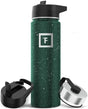 IRON °FLASK Camping & Hiking Hydration Flask with 3 Lids - Stainless Steel, Double Walled & Vacuum Insulated Water Bottle - Leak Proof & BPA Free (Dark Pine Speckle, Straw - 22 oz)