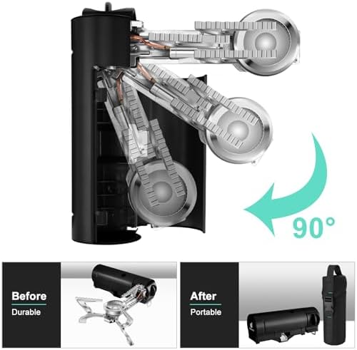 - Easy Setup - The backpack stove for camping has automatic locking device, open the cover and rotate the body to a 90-degree angle, put the butane tank, open the trivet Support. the operation is simple, convenient and fast.