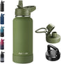 32oz Insulated Water Bottle with Straw, Stainless Steel Metal Vacuum Water Flask, Large Thermos Water bottle with Leakproof 3 Lids for Travel, Camping, Gym Sports Armygreen