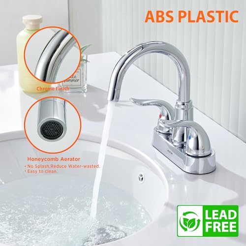 KPW Bathroom Sink Faucet 2 or 3 Hole Chrome Centerset 4 Inch Bathroom Sink Faucet 2 Handle Plating Over ABS Plastic Non-Metallic Lavatory Bathroom Faucet with Pop up Drain Water Supply Hoses