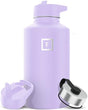 IRON °FLASK Camping & Hiking Hydration Flask with 3 Lids - Stainless Steel, Double Walled & Vacuum Insulated Water Bottle - Leak Proof & BPA Free (Lavender, Straw - 64 oz)