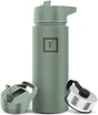 IRON °FLASK Camping & Hiking Hydration Flask with 3 Lids - Stainless Steel, Double Walled & Vacuum Insulated Water Bottle - Leak Proof & BPA Free (Sage, Straw - 18 oz)