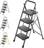 TICONN 4 Step Ladder, Heavy Duty Foldable Step Stool, Portable Steel Folding Stool for Household Garage Storage (Black)