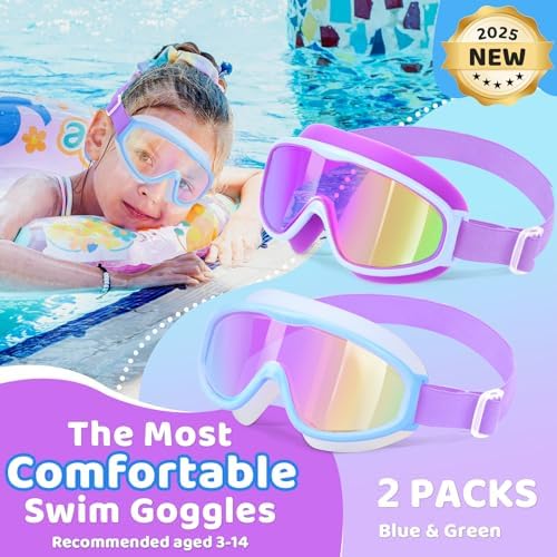 Vvinca Kids Goggles with Comfort Fabric Strap, Kids Swim Goggles Wide View Anti-Fog/UV No Leaking Swimming Goggles for 3-14