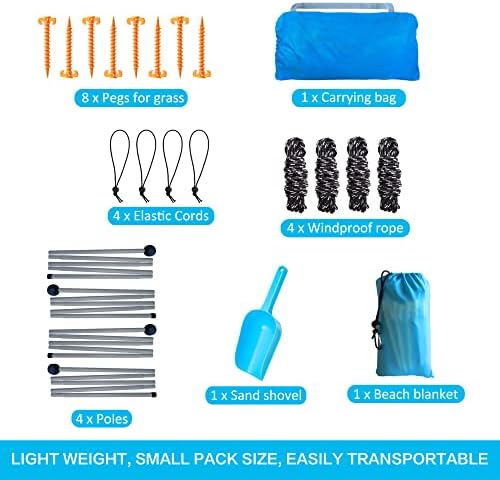 - BEACH CANOPY : This beach canopy is a must have for family, the color Turquoise of this beach canopy is same as the sky and the ocean, being under this beach tent makes you feel relaxed and happy.