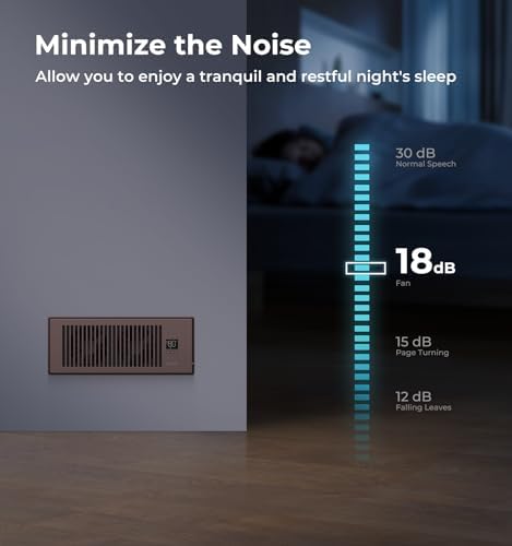 - Quieter: Upgraded by a 21-year-experienced team, the high-static-pressure PWM motor ensures efficiency (up to 120 CFM airflow) while minimizing noise (as low as 18 dBA), ensuring a peaceful sleep. Even lower noise? Simply lower the fan speed (10 levels adjustable)
